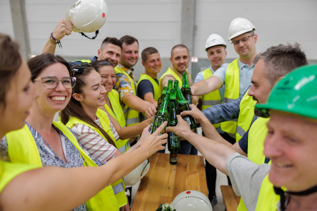 Zdjęcia reportażowe wykonane podczas ceremonii "wiechy" uchwyciły zarówno oficjalne momenty, jak i bardziej nieformalne interakcje między pracownikami i gośćmi. Wydarzenie to, będące ważnym rytuałem w branży budowlanej, stanowiło idealną okazję do pokazania dynamiki i profesjonalizmu zespołu Dekpol. Nasza praca skupiała się na dokumentowaniu zarówno wysiłków związanych z realizacją projektu, jak i radosnej atmosfery towarzyszącej zakończeniu ważnego etapu budowy.