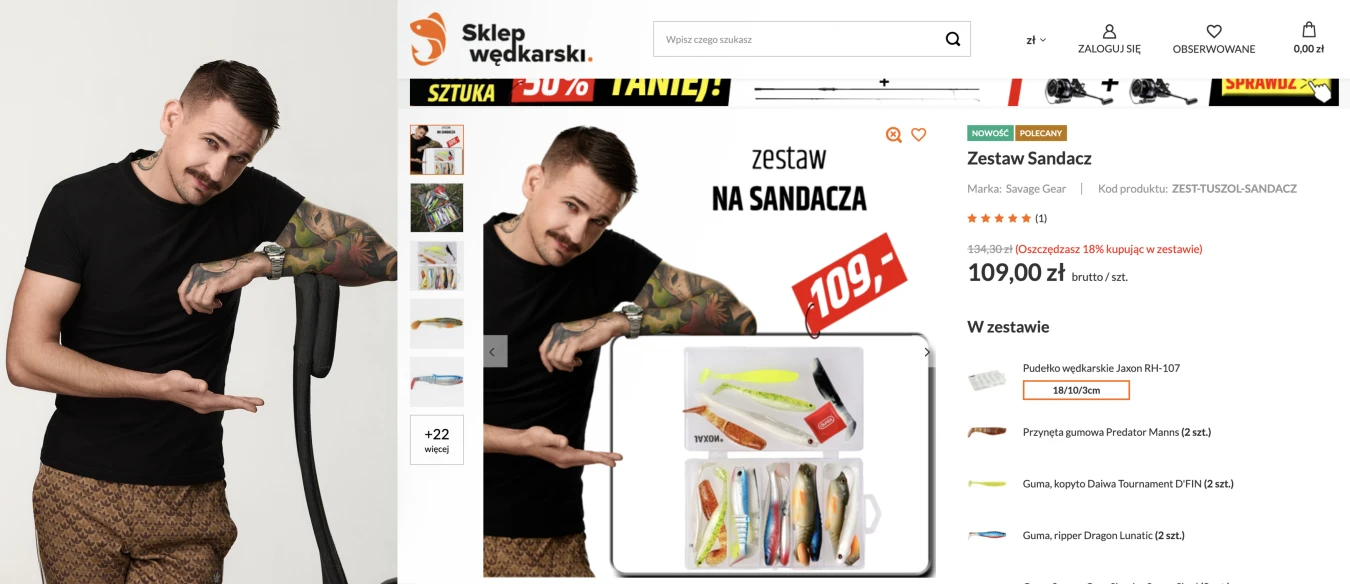 Zdjęcia z sesji posłużyły jako materiał do banerów reklamowych na stronie sklepwedkarski.pl. Dzięki współpracy z Tuszolem, sklep zyskał autentyczne i angażujące treści, które przyciągają klientów zainteresowanych wędkarstwem. Zdjęcia można zobaczyć w galerii przed i po obróbce, co pokazuje, jak ważna jest profesjonalna sesja dla e-commerce w tworzeniu efektywnej kampanii marketingowej.