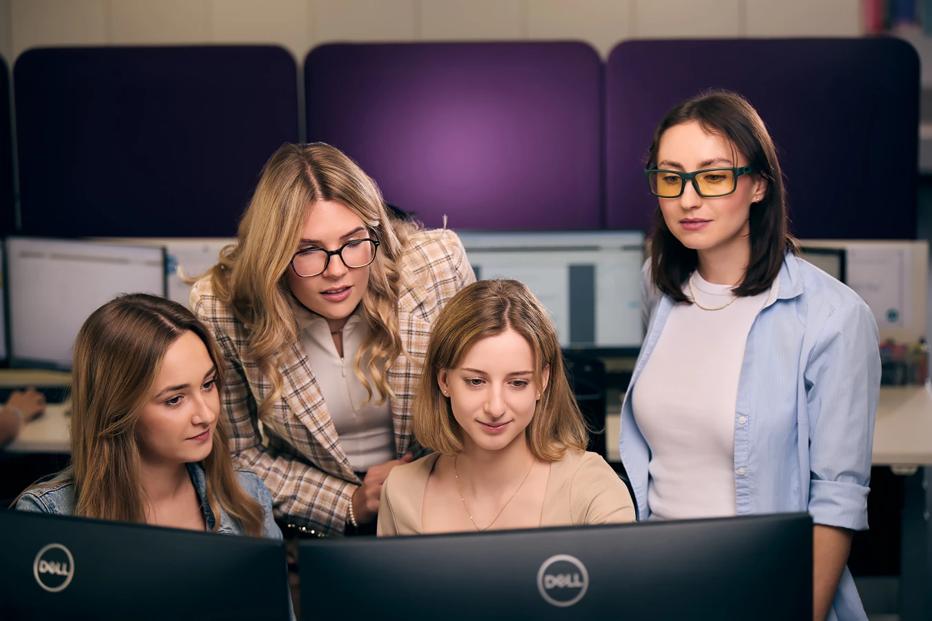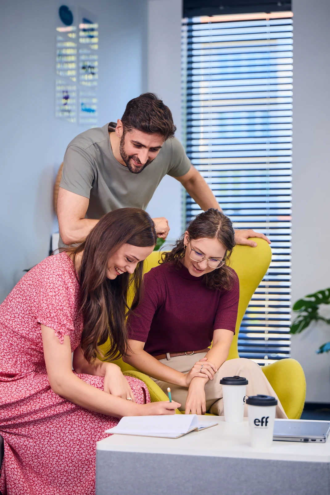 Aby uniknąć chaosu i zapewnić płynny przebieg sesji, stworzyliśmy dokładny harmonogram z podziałem na czas, miejsce i role każdej osoby. Ten starannie opracowany plan nie tylko pomógł w sprawnej realizacji sesji z udziałem aż 30 pracowników DUNI EFF, ale także sprawił, że atmosfera była przyjemna, a cały proces odbywał się bez zakłócania codziennej pracy biura. Każde ujęcie było precyzyjnie zaplanowane, a osoby odpowiedzialne w firmie za sesję miały jasny obraz tego, jak będzie przebiegać praca.